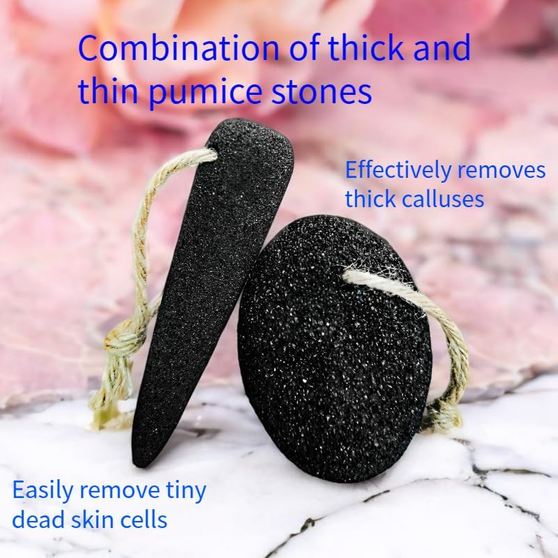 The set includes two pumice stones, one in regular shape and one in cone shape. The regular shape is suitable for large areas of dead skin removal, while the cone shape is ideal for hard-to-reach areas such as toe seams and heels.