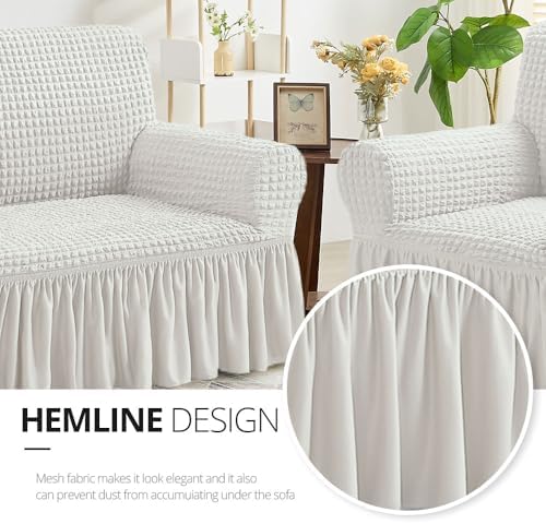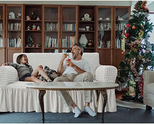 NICEEC Sofa Slipcover Ivory Sofa Cover 1 Piece Easy Fitted Sofa Couch Cover Universal High Stretch Durable Furniture Protector with Skirt Country Style (3 Seater Ivory)