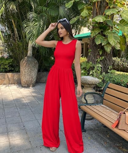 OQQ Womens Jumpsuits Dressy Crew Neck Sleeveless One Piece Outfits Casual Wide Leg Pants Jumpsuits