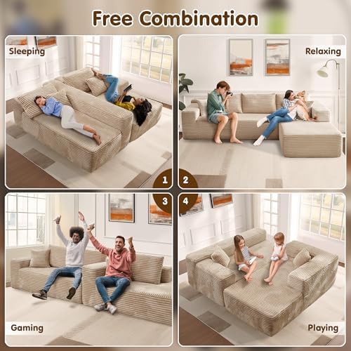 ovios 104" Cloud Sectional Couch with L-Shape Chaise,Modern Modular Sofa with Deep Seat, Upholstered Couches for Living Room Bedroom,No Assembly Required, Beige (Plush Corduroy Fabric)