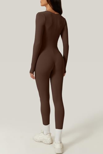 QINSEN Womens Sexy Square Neck Long Sleeve Full Length Leggings Bodycon Stretch Jumpsuit