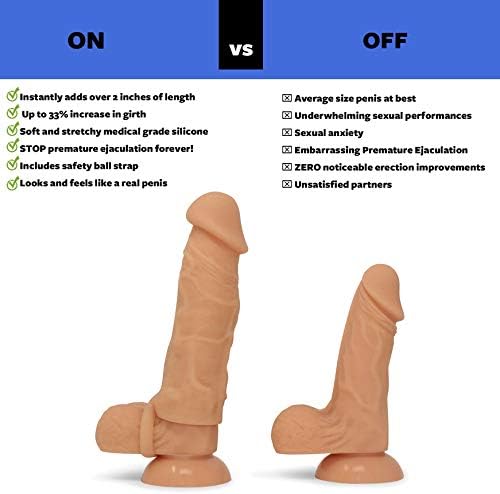 Isn’t it time that you took your sex life back and reignite the love, passion, and SEX! Healthy Vibes makes It very easy to reignite that passion, just slip on your new Natural Penis Extension Sleeve. You no longer need to worry about embarrassing premature ejaculation or an underwhelming penis size. All your sexual frustrations and anxieties can be gone, INSTANTLY! Healthy Vibes molded this extremely realistic sex toy for men directly off a real man. It’s so realistic looking, you will have a hard time telling the difference. Not only will you last longer in bed but just slipping this strap on penis extension over your penis and you will see over 2 inches in increased length and 33% more girth. Over 50% of men suffer from one form of Erectile Dysfunction or another, this cock sheath will take care of those problems so you no longer suffer! Made from medical grade silicone, the strap on penis extension is phthalate free and has no toxins at all. Remember to use LOTs of water based lubricant inside the penis sleeve as well as outside.