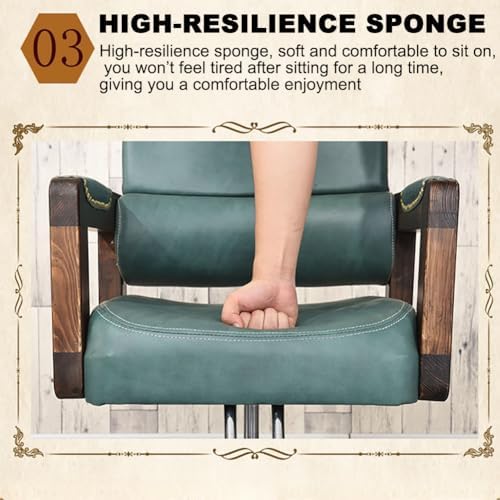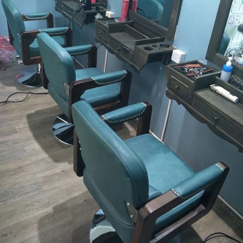 This salon hairdressing chair is made of high-quality PU leather to ensure worry-free maintenance; it can be easily cleaned with just a gentle wipe to ensure a perfect appearance day after day, artistic armrests, elegant armrest shape, standard PU leather, exquisite texture, comfortable and soft feel, enlarged chassis, high-quality electroplating, bright color, no fading, high-strength hydraulic pump, you only need to step on the foot to adjust the height of the chair, which can be adjusted up and down 10 cm, and the footstool frees your feetColor: green, brownMaterial: metal + PUSize: 83*50*56.5CMWeight: 25kgPackage ContentsBarber Chair * 1