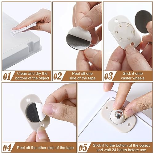 These self adhesive caster wheels saved my from having to buy a new coffee pot.The steam on my coffee pot was ruining the bottom of my upper counter cabinet.Now with the casters I just slide it out, make the coffee and slide it back. Works great.