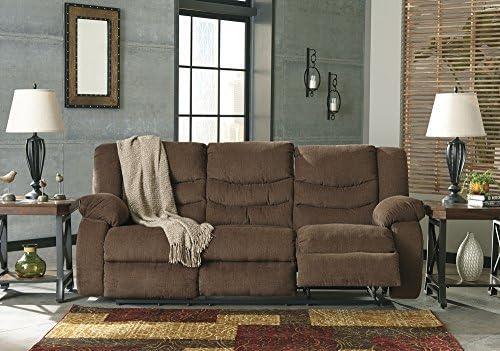 Signature Design by Ashley Tulen Upholstered Manual Pull-Tab Reclining Sofa, Dark Brown
