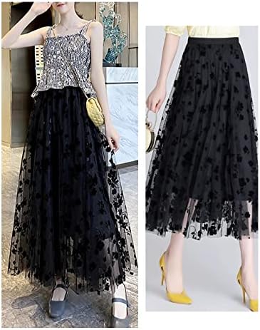 Skirts for Women Midi Long Length Dressy Casual Trendy Summer Tulle A-Line Floral High Waist Skirt