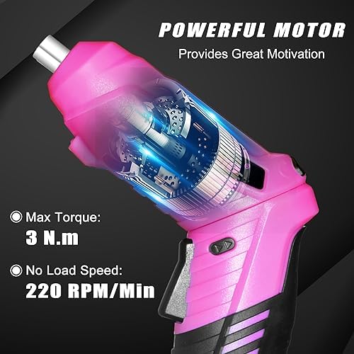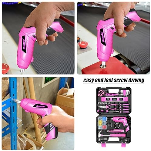 SOLUDE Pink Tool Set,130 Piece Home Tool Kit for Women with 3.6V Cordless Rechargeable Screwdriver,Basic Toolkits for New House,Apartment,Dorm & DIY Projects