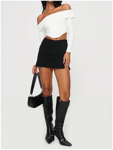 SOLY HUX Women's Bodycon Mini Skirts Y2k Split Zipper Side Stretchy Pencil Skirts with Shorts Underneath