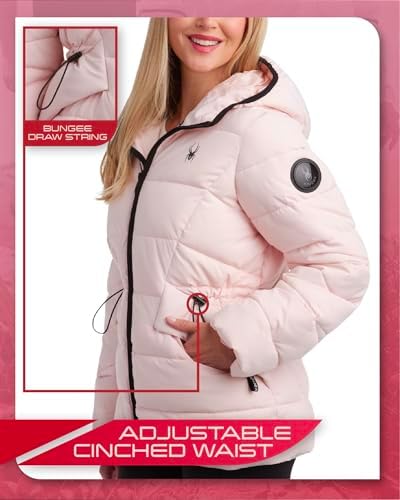 Spyder Women's Puffer Jacket - Water-Resistant Insulated Winter Coat with Cinched Waist - Womens Hooded Quilted Jacket (S-XL)