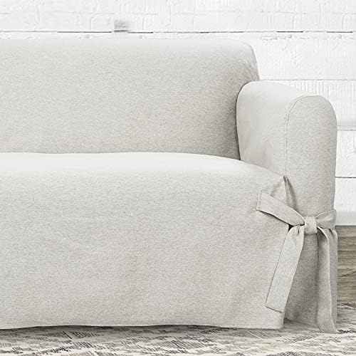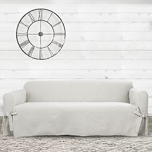 A new SureFit furniture cover is a great way to extend the life of your favorite furniture and revitalize your home – for a new season or a special occasion. You also make a sustainable and economical choice by freshening up and reusing rather than buying new! Add a new look and great protection to your furniture with our best-selling SureFit Farmhouse Basketweave slipcover. These slipcovers have front adjustable ties and an elastic band that give a custom fit. The heathered faux linen farmhouse look compliments modern, contemporary and rustic decor. 100% polyester and machine washable for easy care.