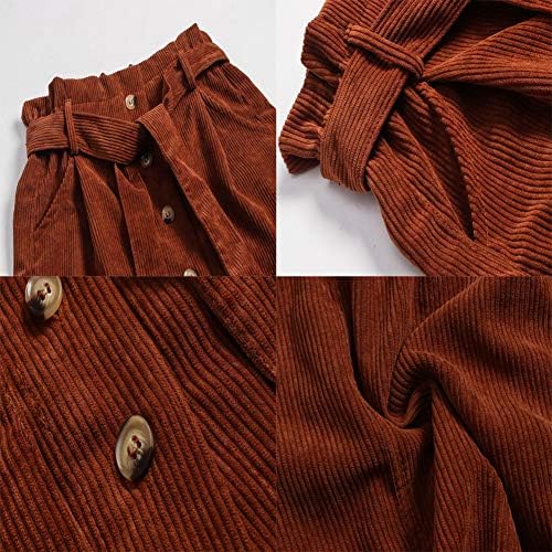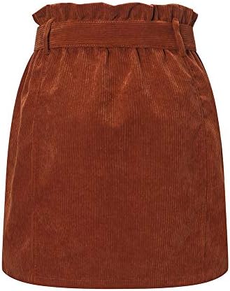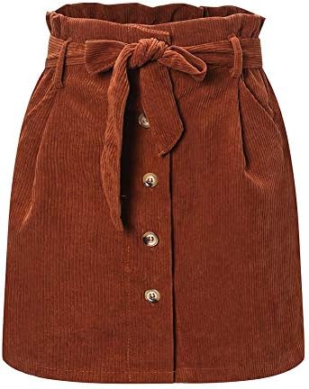 Susupeng Women Paperbag High Waist Elastic Belted Corduroy Button Front with Pockets Short Mini Skirt