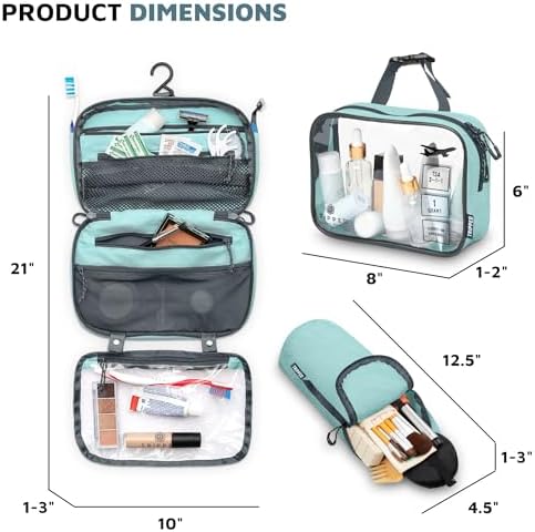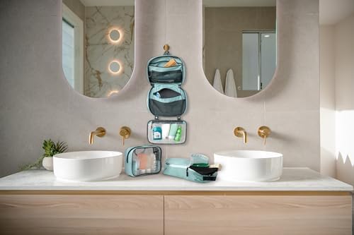 Toiletry Bag Kit Set: Hanging Travel Toiletry Bag + 311 TSA Cosmetic Liquid Bag + Ultralight Accessory Organizer Pouch (Dusty Teal)