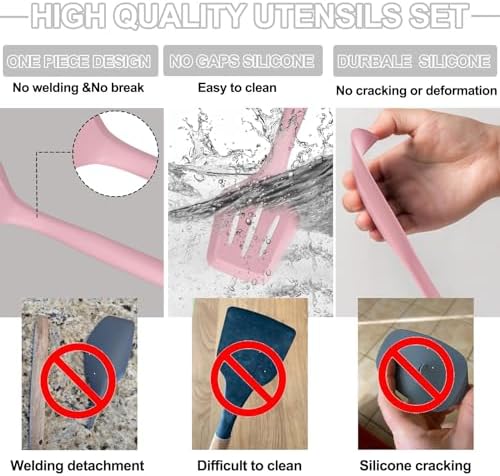 Seamless silicone design which is a major plus for kitchen utensils as there aren't any cracks or ridges to catch food or harbor anything that makes it super easy to clean and use.