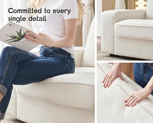 I LOVE this couch. The price during Prime Day made me skeptical, but it ended up exceeding my expectations! It is the perfect size for my living room, I expected it to be smaller. The couch cushions are deep and comfy, a bit on the firm side which I don’t mind. The back cushions, as mentioned, come a bit flat, which I fixed by adding stuffing from an old pillow.Assembly was easy and the instructions were clear. I read reviews prior on removing the cushions from the legs - I removed the middle first and had no issues! The couch build itself is sturdy. The color and texture of the couch is really pretty as well.Overall I’d highly recommend this couch, especially if you’re on a budget or a student like myself and would still like a trendy, pretty living room.