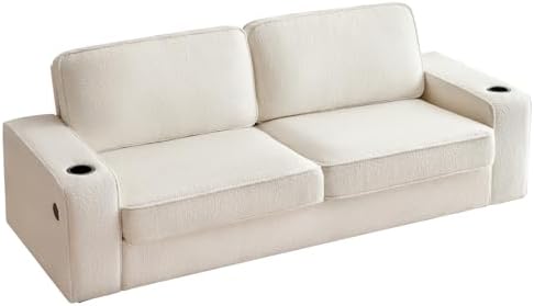 I’ve had this sofa for about 7-8 months, and overall, it’s been a good buy for the price. I was looking for an affordable option that fit my living room’s design, and this checked all the boxes. Assembly was easy and quick, which was a nice bonus.For its price, the sofa is great, though there are some aspects I’ve had to tweak. The cushions initially felt a bit flat, so I added some fluffy polyester fill to give them more comfort and support. Another consideration is the backrest—it’s very flat, which can be uncomfortable if placed against a wall. Without much depth behind the cushions, it’s easy to accidentally hit your head on the wall when you lean back. If you’re planning to position it away from a wall, this might not be an issue.The armrests have a sleek, firm shape and work surprisingly well as a makeshift laptop stand, which I’ve found convenient. The cup holders are a fantastic feature that we use often. However, the USB ports are slow, so I don’t find them very useful.Overall, if you’re looking for a sofa in this price range, I’d recommend this one. It’s even comfortable enough to nap on, which was a pleasant surprise!