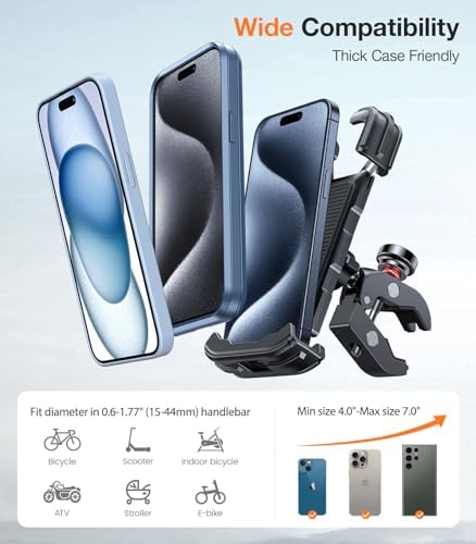 Super wide and deeper adjustable Design ,enable VICSEED bike phone holder mount to fit for all cell phones(4.0-7.0 inches) and thick phone cases
