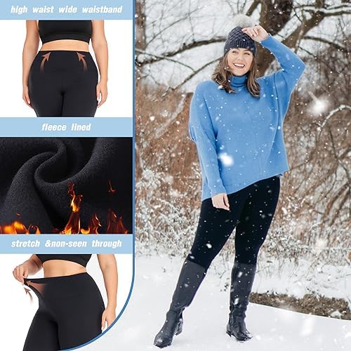 we fleece 3 Pack Plus Size Fleece Lined Leggings Women -Stretchy X-Large-4X Warm Winter Yoga Pants Thermal Leggings