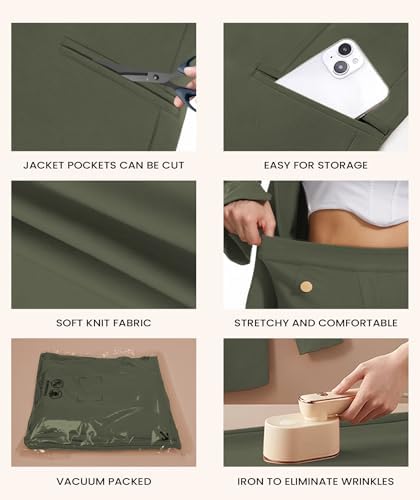Women's 2 Piece Blazer Outfits Business Casual Asymmetrical Jacket Button Wide Leg Pants Dressy Suit Sets