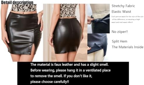 Women's Black Leather Skirts High Waisted High Side Slit Bodycon Mini Skirts