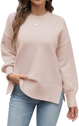 Womens Oversized Sweaters Trendy Ribbed Knit Pullover Tops Side Slit Crewneck Sweatshirts Fall Fashion 2024
